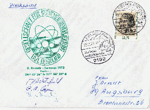 Die Unterschriften auf dem Beleg sind wahrscheinlich von Besatzungsmitgliedern stammend, die im Sommer 1973 in dem Labor Dienst getan haben.
