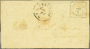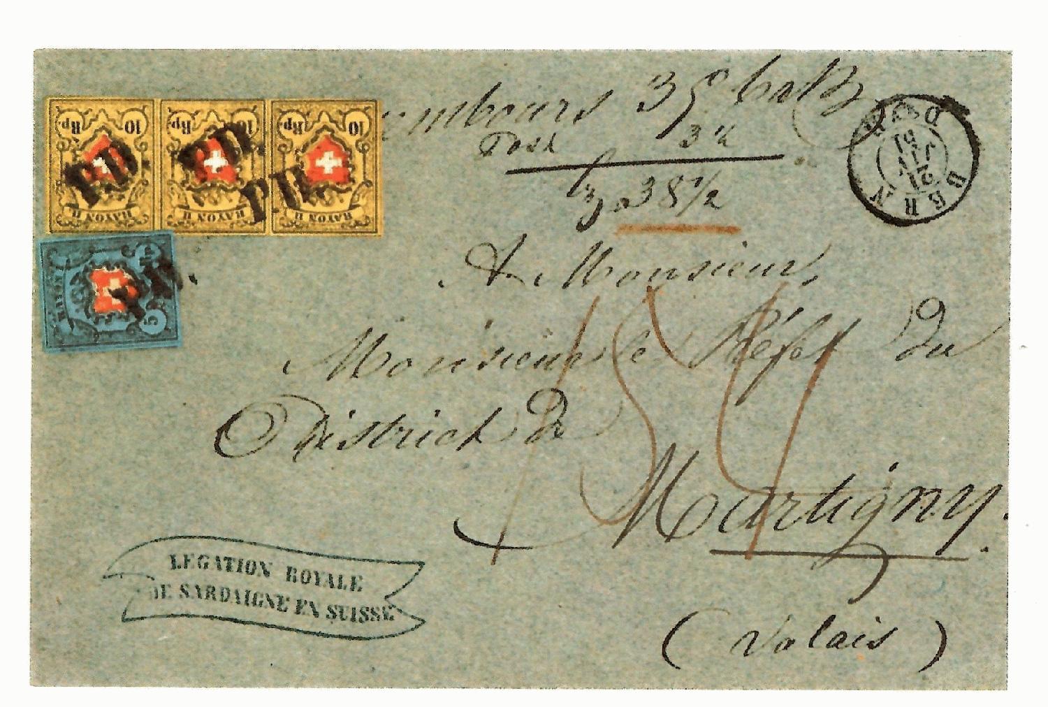 Am 11.11.1989 kam ein eher unbekanntes Auktionshaus "Auction Phila, Milan" zu der Ehre, wichtige Briefmarken der Sammlung Rothschild zu verkaufen. Ob sie erst 1989 vom Sammler verkauft wurden oder bereits viel früher (und folglich bereits einem neuen Besitzer gehörten), weiss ich leider nicht. Aber der Brief, den ich anbei vorstelle, ist den Spezialisten schon länger bekannt als "ex Rothschild" (siehe auch Text Harmer London 1954)