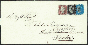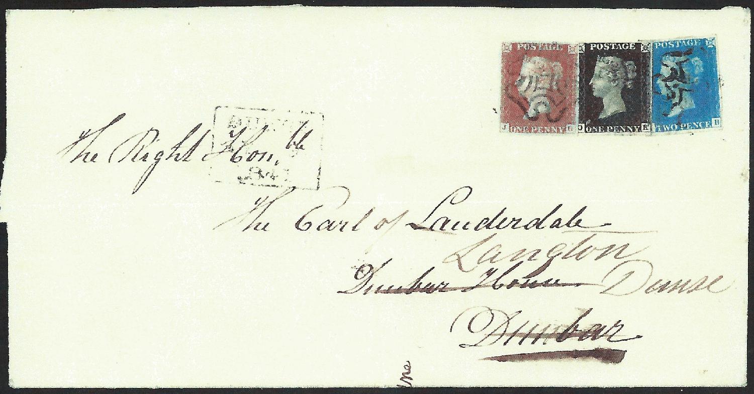 Die 1 Penny-Marke wurde nicht akzeptiert als Vorauszahlung, sondern der Brief wurde belastet mit zwei Pence (siehe Tinten-Notiz). 1 d war das Porto, und dazu wurde 1 d Strafe berechnet. Gemäss Attest Holcombe 1992 wurde die Marke "almost certainly" mit einem Malteser-Kreuz- Stempel von Glasgow entwertet.