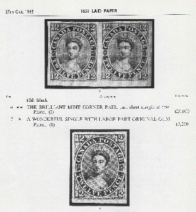 Vor 60 Jahren kam in London die berühmte Sammlung von General Robert Gill zur Versteigerung. Der Mann hat vor allem mit seinen Einkäufen / Verkäufen von teuren Marken aus Belgien und Canada Geschichte geschrieben. Unter anderem konnte er auch eines der vier Paare der 12 Pence schwarz anbieten. Entsprechend begeistert war auch Auktionator Robson Lowe.