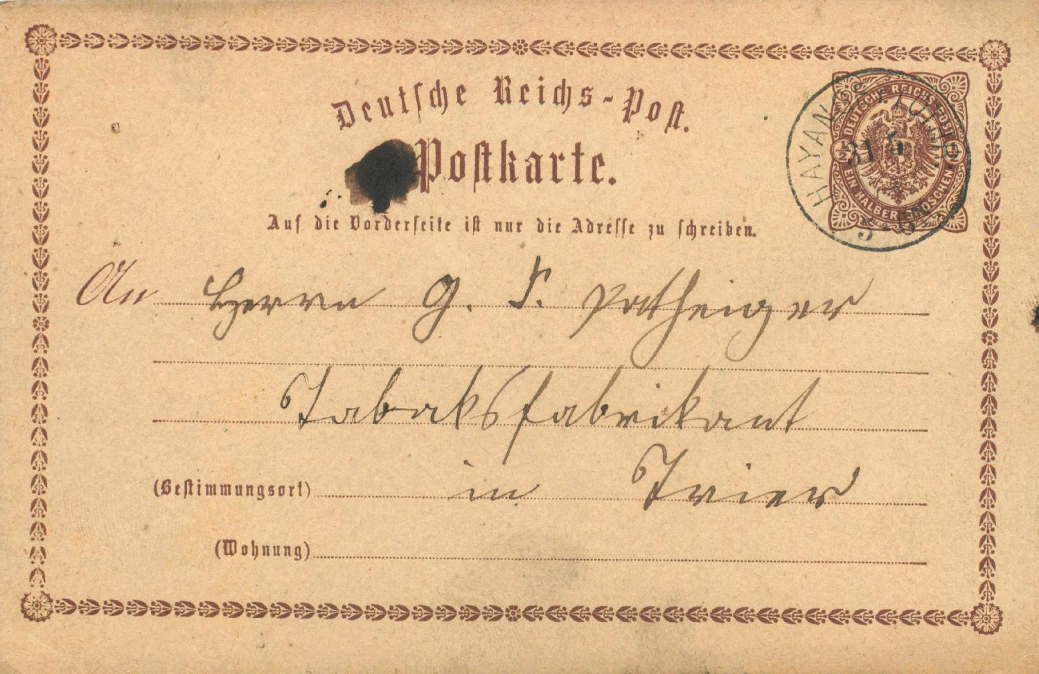 Anlass hierzu gaben zwei Postkarten, die unleserlich gestempelt waren und dem General-Postamte vom Empfänger vorgelegt bzw. reklamiert wurden. Der Empfänger konnte Bestellungen von Waren nicht ausführen, weil die unleserlichen Aufgabestempel keinen Hinweis auf den Wohnort der Absender gaben und diese selbst ihren Wohnort nicht angaben hatten. Hierzu ist zu bemerken, dass zur damaligen Zeit vielerorts Sendungen auch dann zugestellt werden konnten, wenn nur der Name des Empfängers und der Wohnort als Adresse aufgeschrieben waren. Ferner gingen Absender und Empfänger damals davon aus, dass von Seiten der Post der Aufgabestempel leserlich abzuschlagen war.