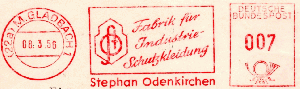 ein Freistempel vom 08.03.1956 aus Mönchen-Gladbach von der Fa. Stephan Odenkirchen, die Fa. stellte Industrie-Schutzkleidung her.