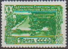 07.12.1949 – MiNr. 1420 – Sowjetrepubliken: 20 Jahre Tadschikische SSR – u.a. Bewässerungsanlagen