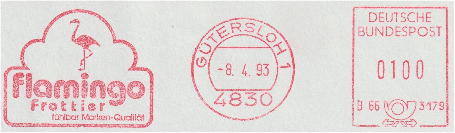 hier haben wir einen Flamingo aus Ostwestfalen – Exotik trifft auf Bodenständigkeit. In Gütersloh war einst die Firma Vossen zu Hause, bekannt für ihre hochwertigen Frottee-Produkte. Und wem der Name nichts sagt: Das sind die Bademäntel, die Udo Jürgens bei seinen Konzerten trug. :)