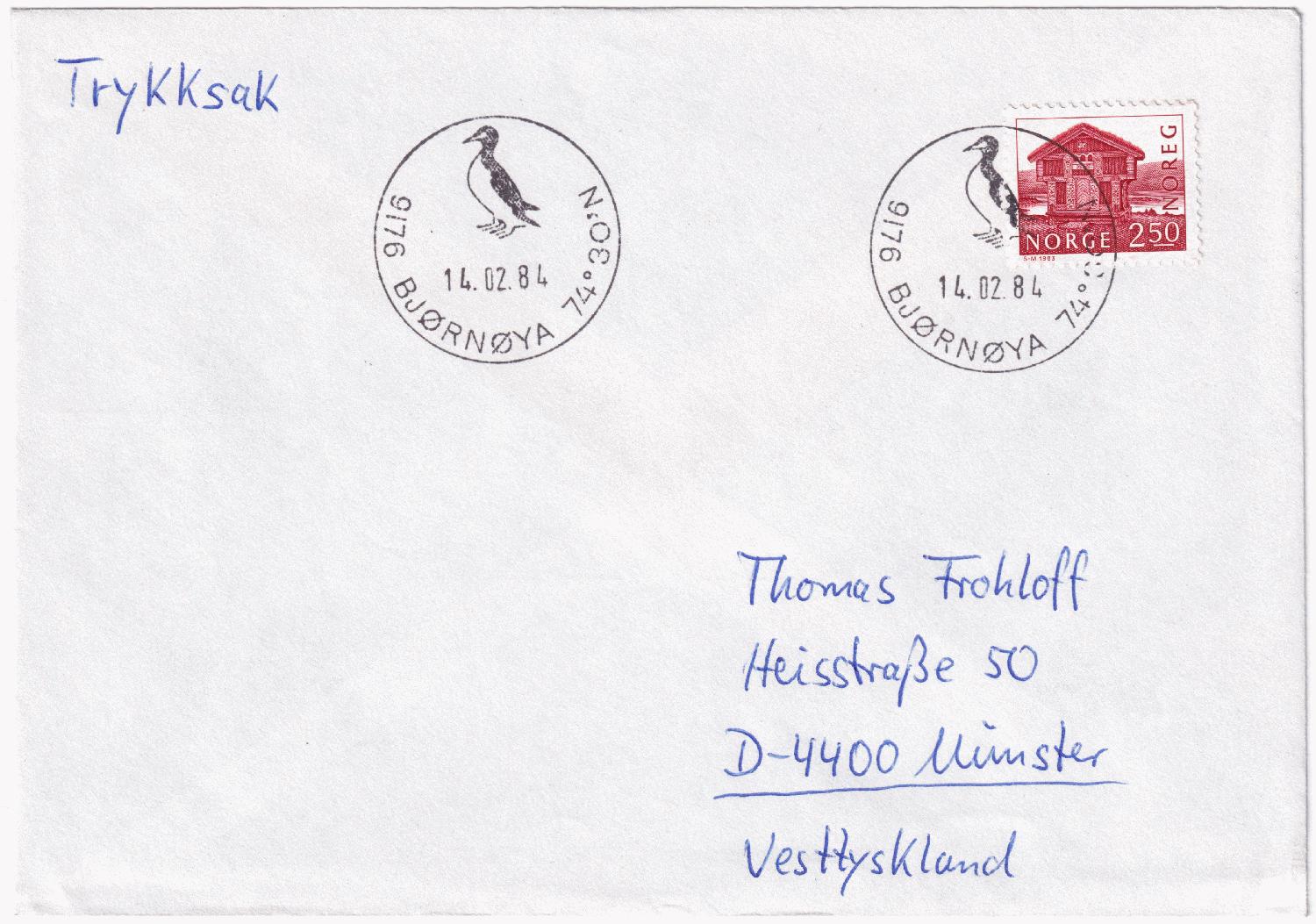 Der Tagesstempel vom 14.02.1984 kommt aus Bjørnøya (Deutsch: Bäreninsel). Als ich bei Wikipedia nachschlug, wunderte ich mich. Dort steht [1]: