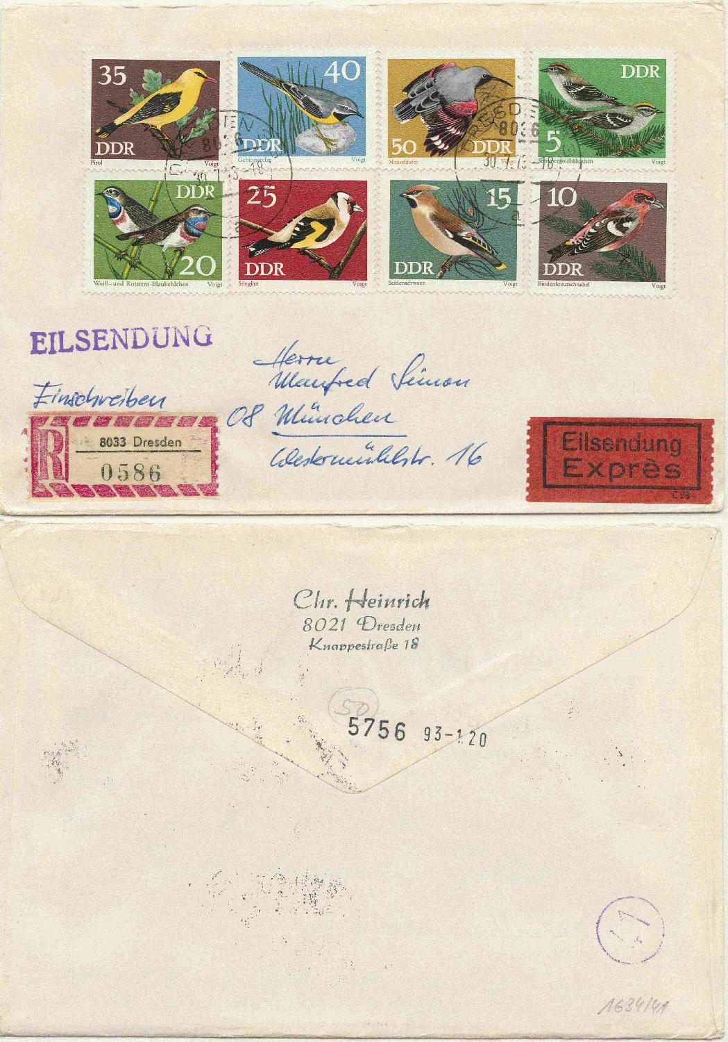 Brief nach Berlin, frei gemacht mit der MiNr. 1591 zu 85 Cent.