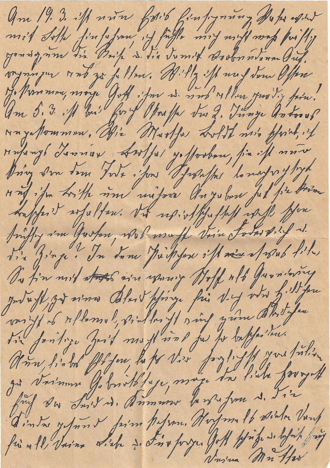 Ich muß jetzt leider schließen. Viele Grüße besonders