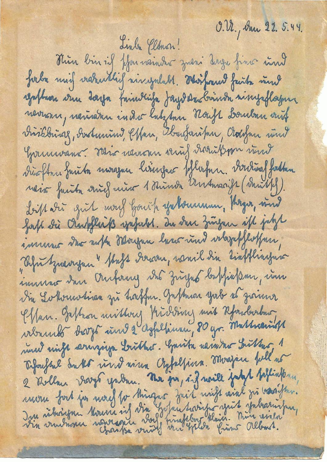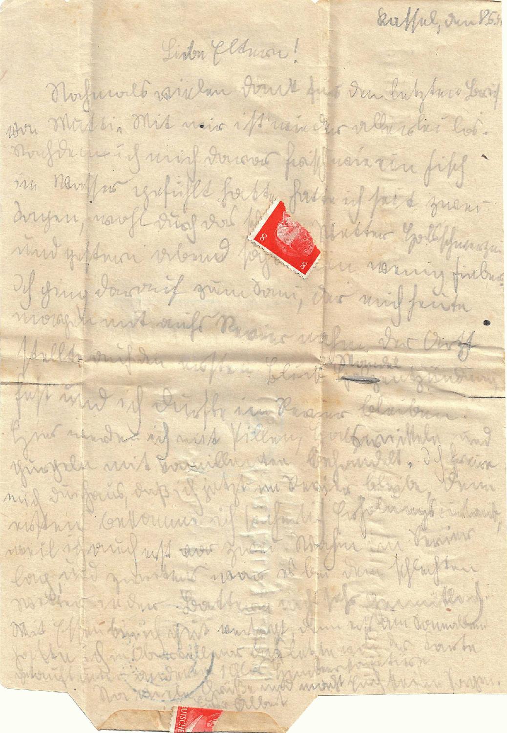 der erste Brief von Albert an seine Eltern, datiert vom 12. Januar 1944, abgestempelt in Hofgeismar, und mit großer Hilfe von Emiel die fehlenden Worte entschlüsselt - Danke Emiel.