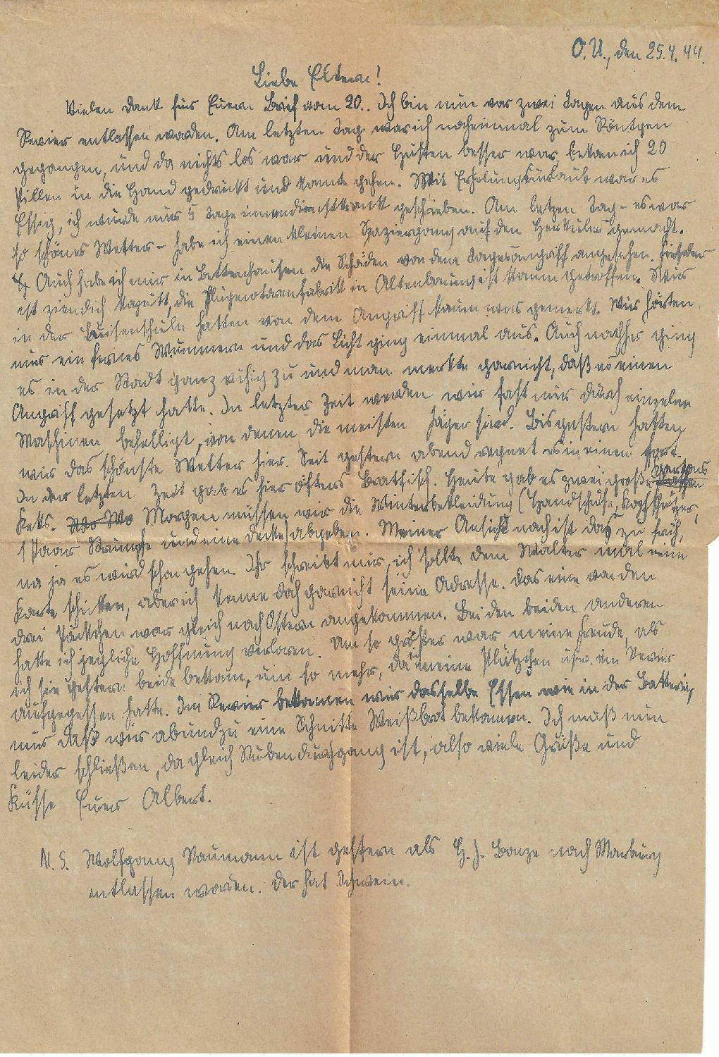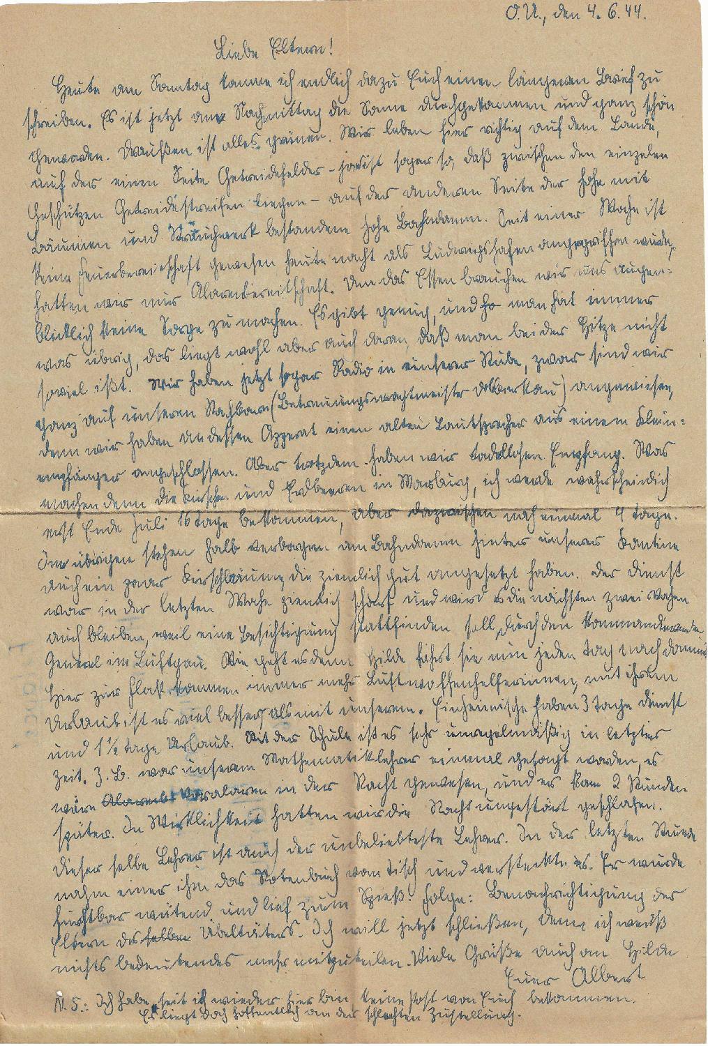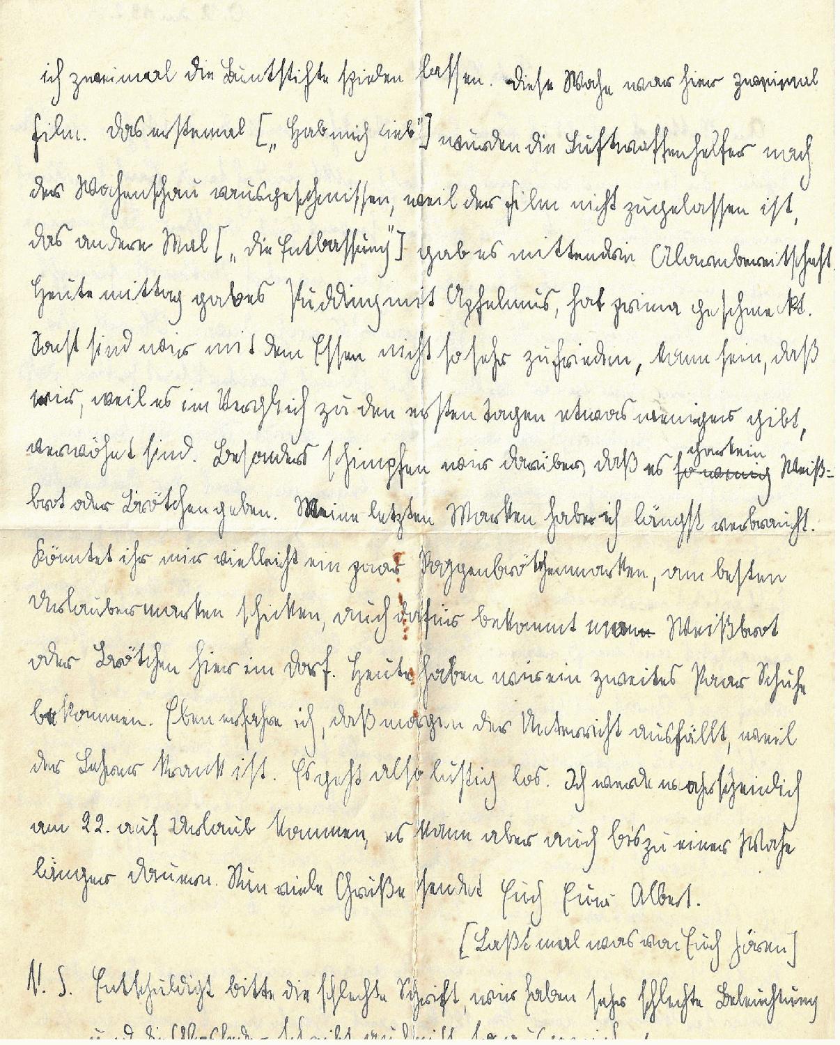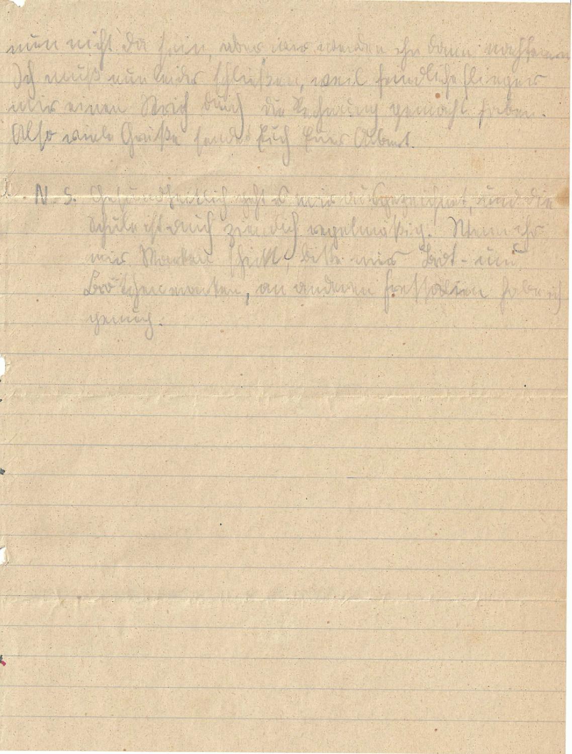 N.S.: Ich habe seit ich wieder hier bin keine Post von Euch bekommen.