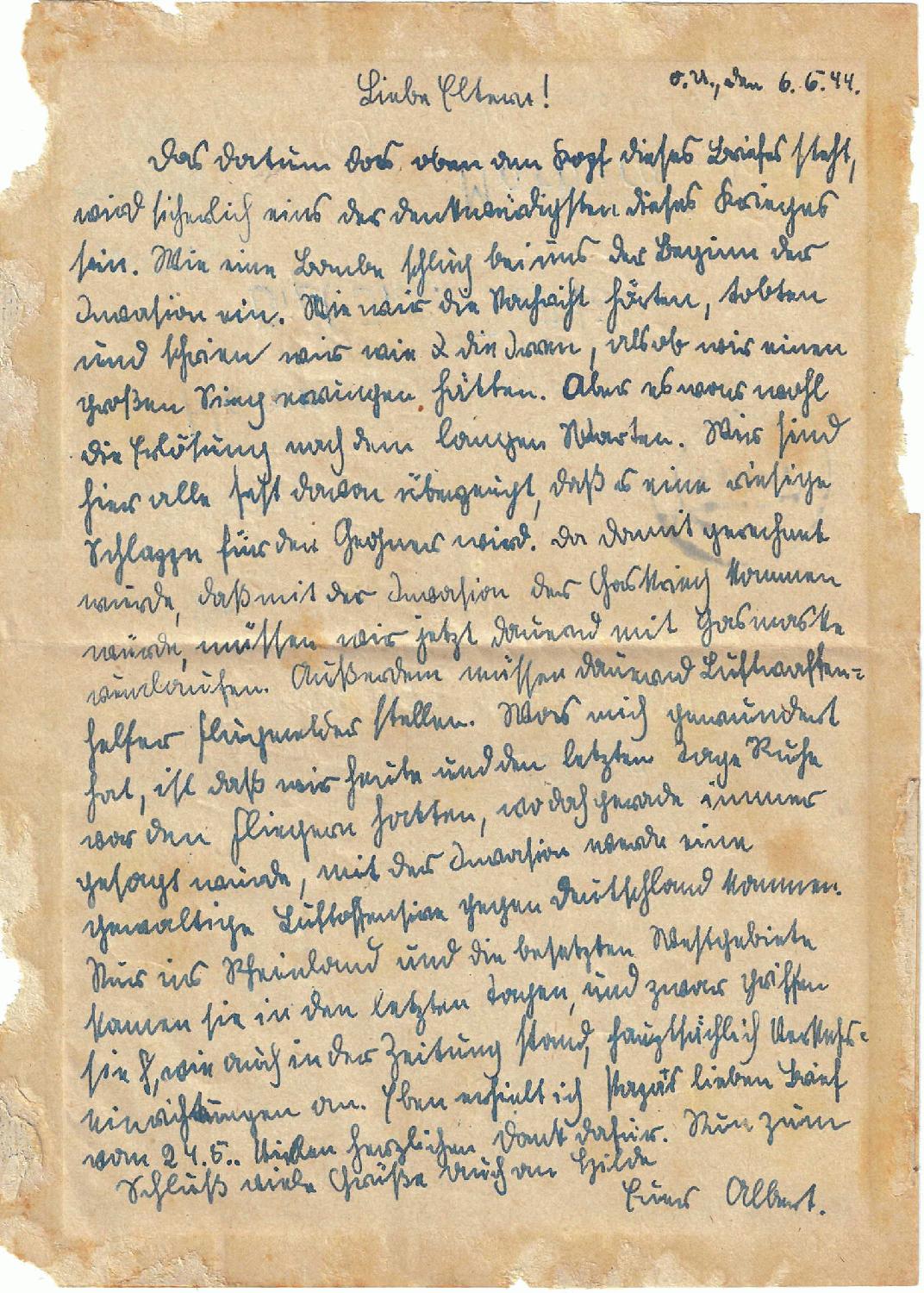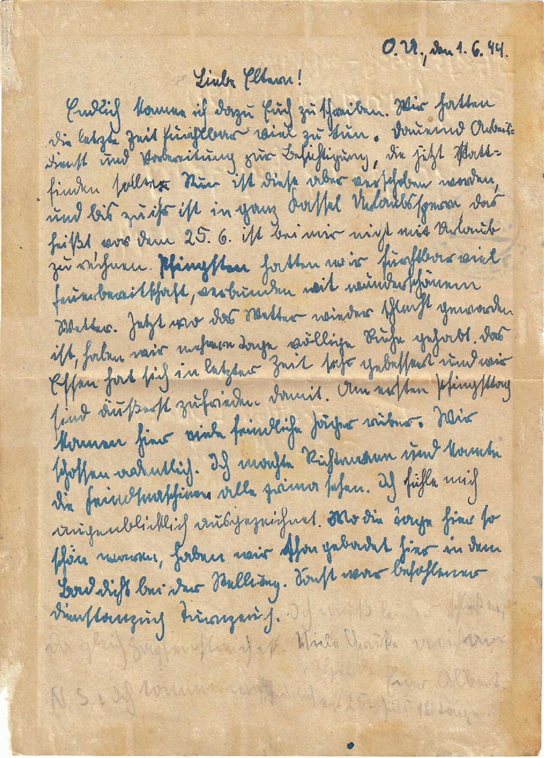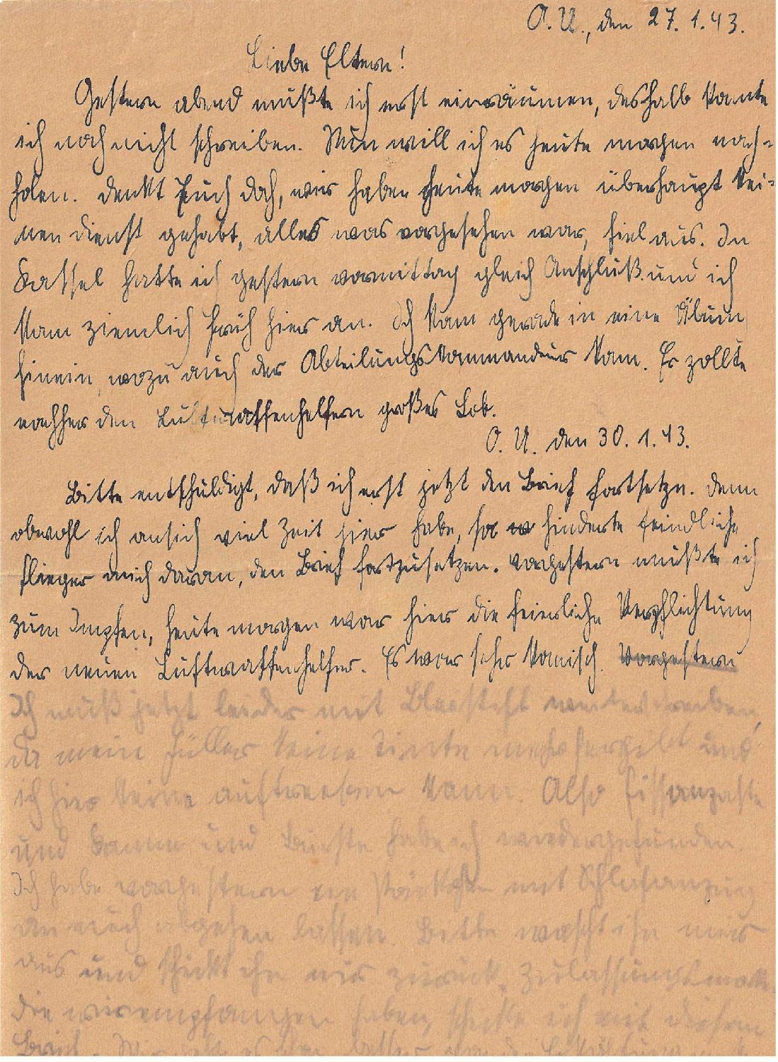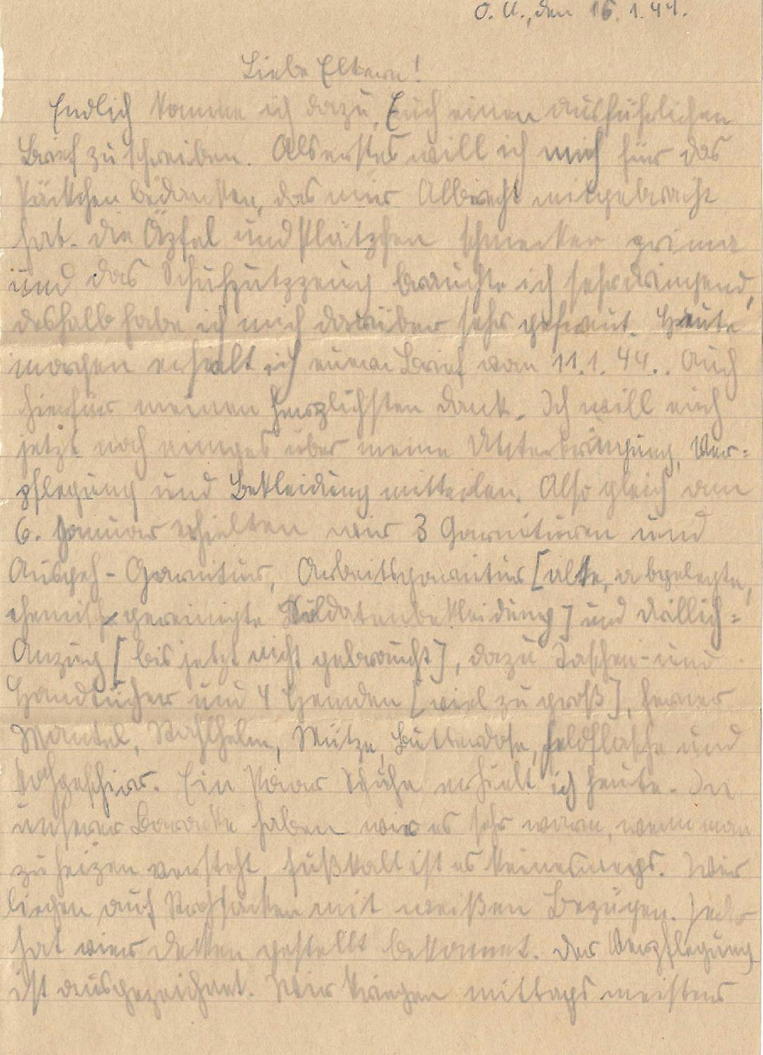 morgen erhielt ich einen Brief vom 11.1.44. . Auch