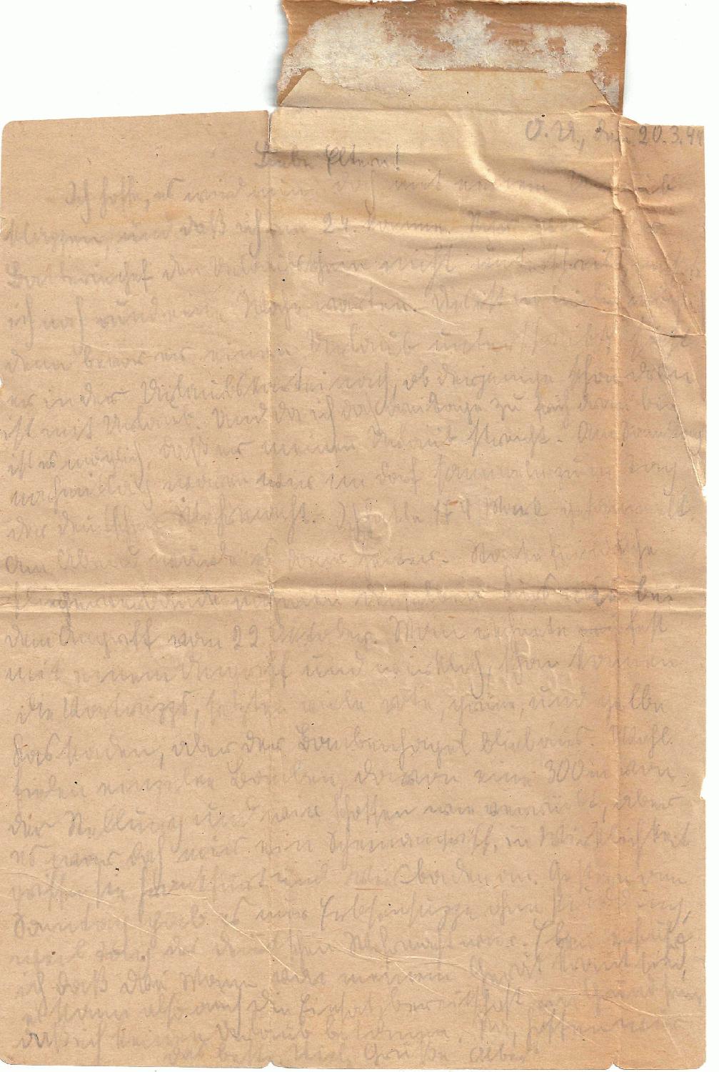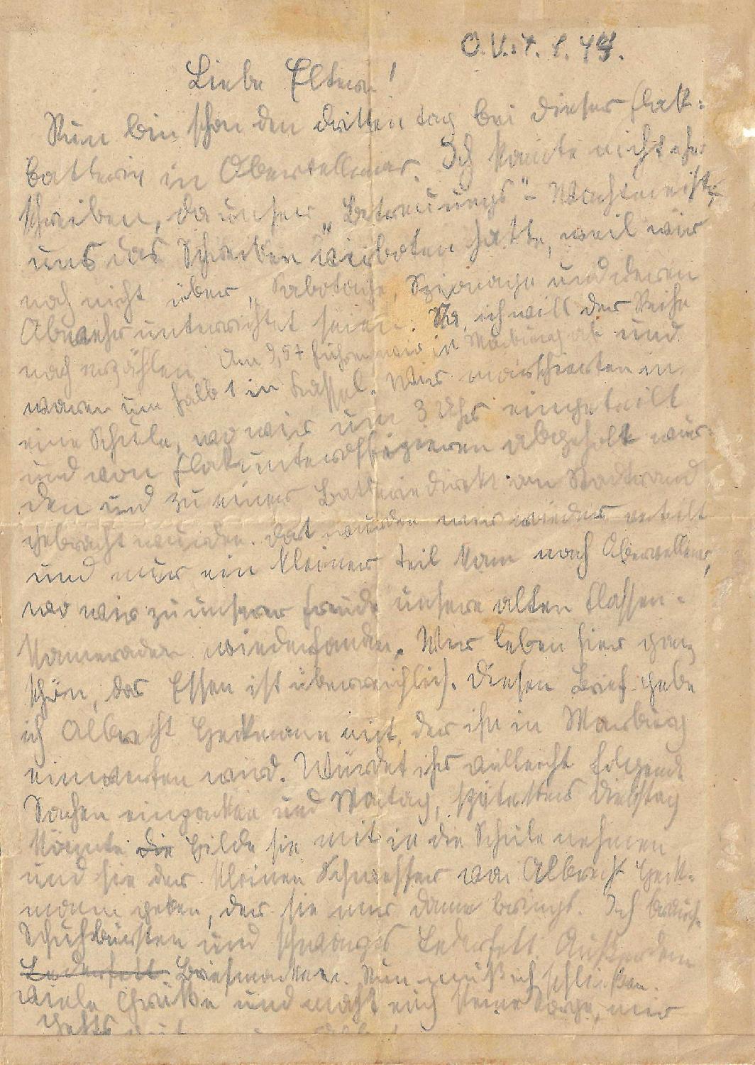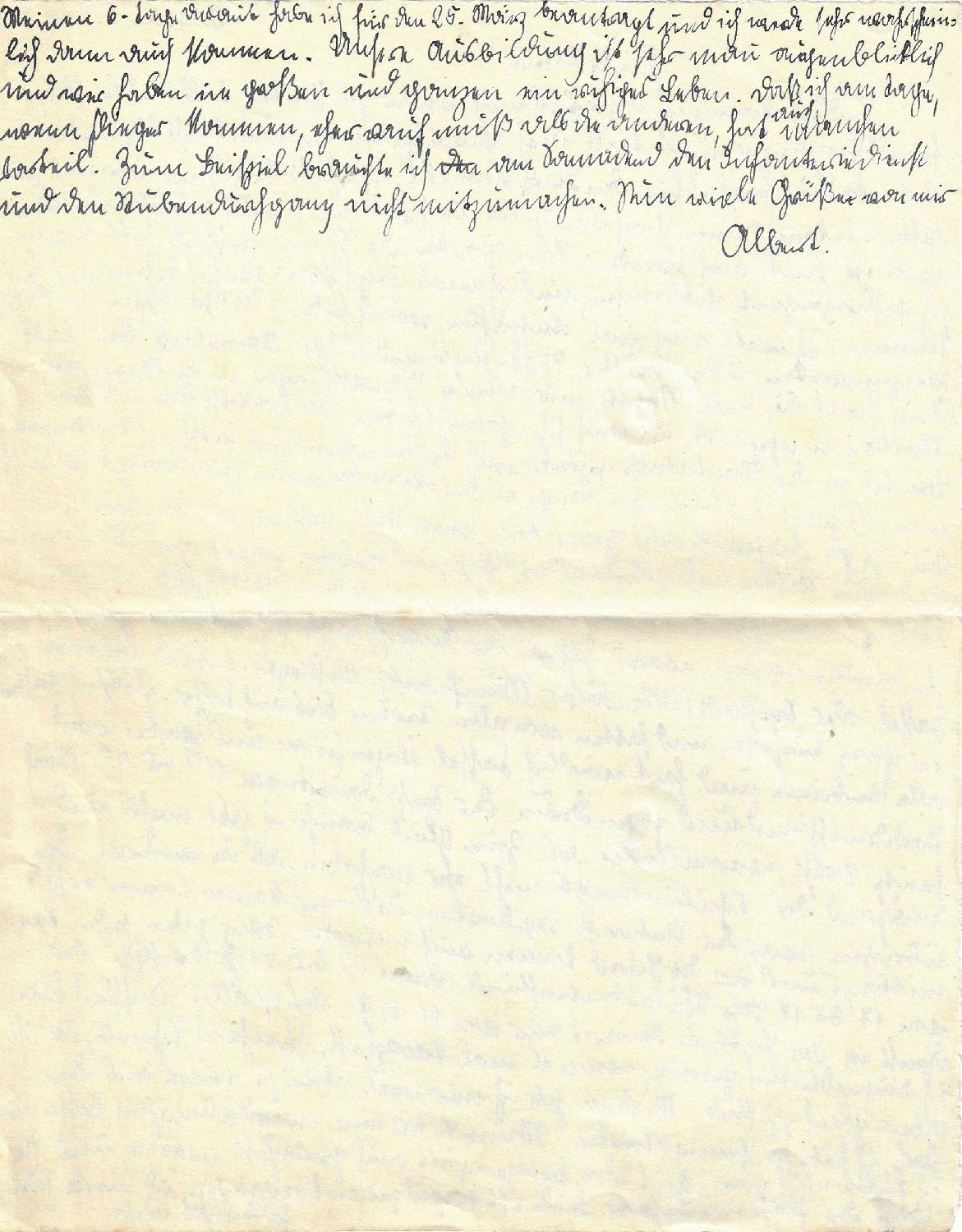 Albert schreibt einen ausführlicheren Brief über seine ersten Tage bzw. Unterbringung, Bekleidung und Verpflegung