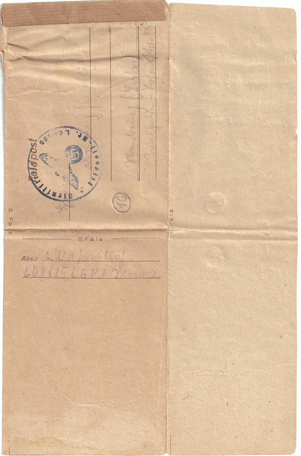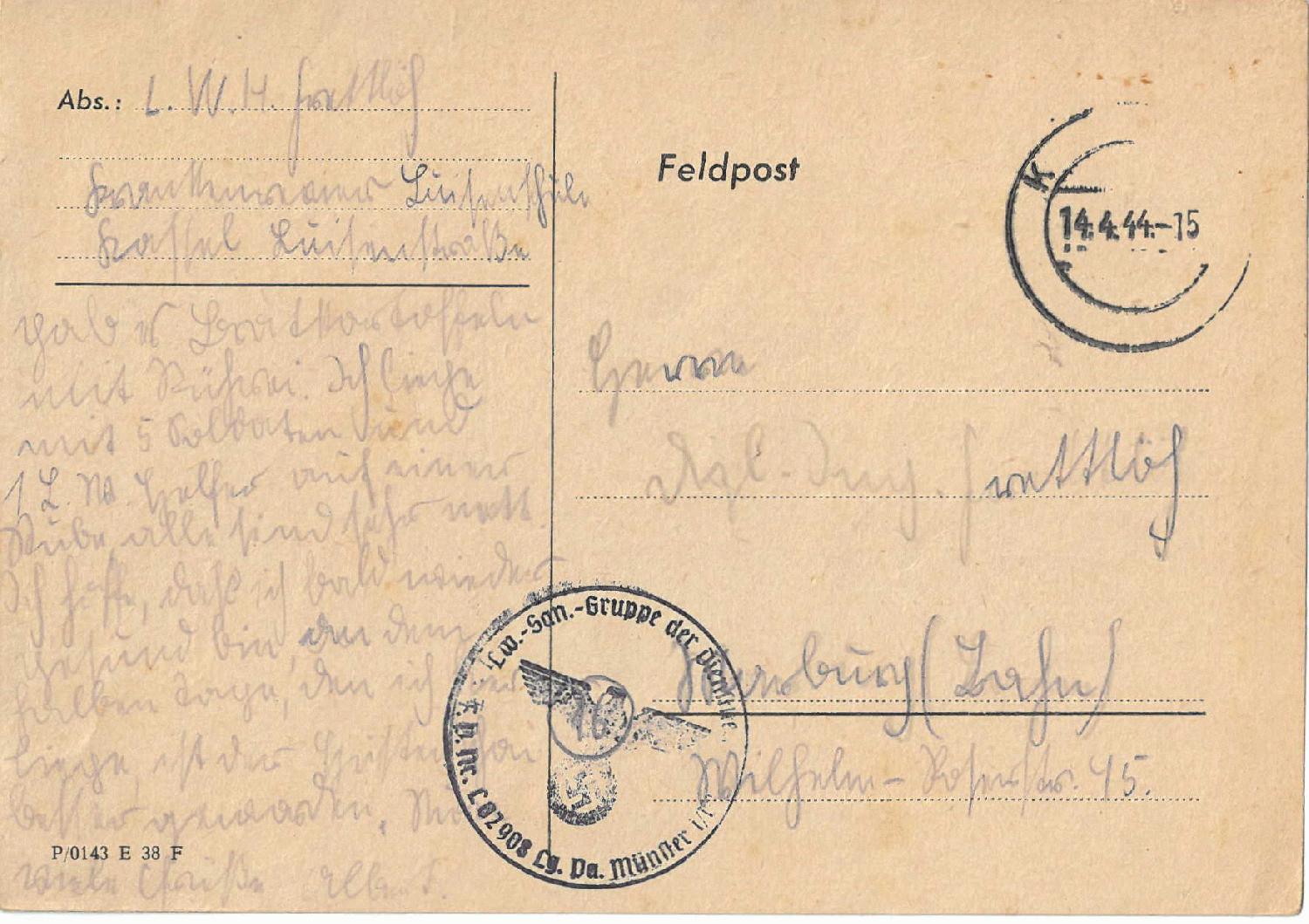 heute zeige ich die erste Feldpost von Albert Frettlöh an seine Eltern, geschrieben am 7. Januar 1944, einem Freitag.