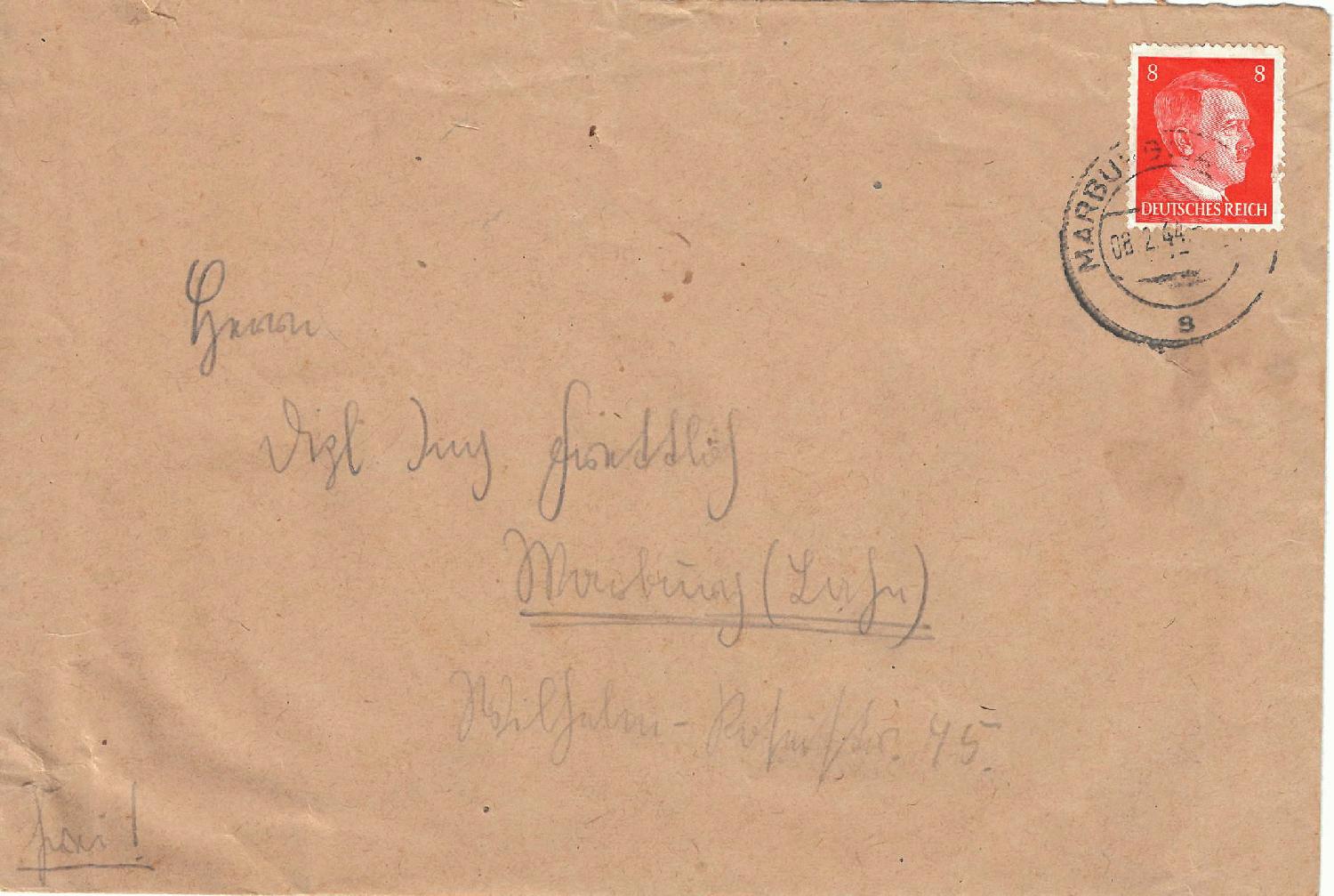 Albert hat die Gelegenheit genutzt und seine Post einer Bekannten nach Marburg mitgegeben ... im Adressbuch von Marburg 1938 und 1950 ist eine Elli Börsch, wohnhaft in der Wilhelmstraße 18 bzw. 28, gelistet, sie ist Pfarrerswitwe