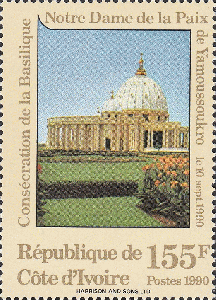 Wikipedia berichtet u.a. wie folgt über das Bauwerk : „Die Basilika Notre-Dame-de-la-Paix (deutsch Unserer Lieben Frau des Friedens) in Yamoussoukro in der Elfenbeinküste ist eine römisch-katholische Kirche im Bistum Yamoussoukro. Der Bau wurde von 1985 bis 1988 nach Plänen von Pierre Fakhoury errichtet und ist formal dem Petersdom in Rom nachempfunden. Mit etwa 8.000 m² Grundfläche und einer Kuppelhöhe von 158,1 m gehört sie zu den größten und höchsten Kirchengebäuden der Welt und fasst etwa 11.000 Menschen. Die Kirche wurde vom ersten Präsidenten der Elfenbeinküste, Félix Houphouët-Boigny, gestiftet. 1990 wurde sie von Papst Johannes Paul II. geweiht und trägt den Titel einer Basilica minor. Verantwortlich für Verwaltung und Seelsorge ist die Gemeinschaft der Pallottiner.“