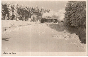 Ein Personenzug nach Drei-Annen-Hohne auf der Rübelandbahn. Gedruckt 1955 in Karl-Marx-Stadt, ging sie 1960 von Elbingerode nach Arad in Rumänien