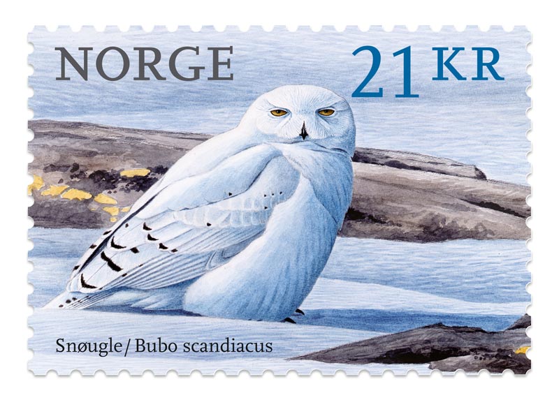 Norwegen 2018: Diese Briefmarke, die eine Schneeeule darstellt, wurde 2018 zum schönsten Briefmarken-Motiv der Welt gekürt. Es stammt vom bildenden Künstler Viggo Ree.