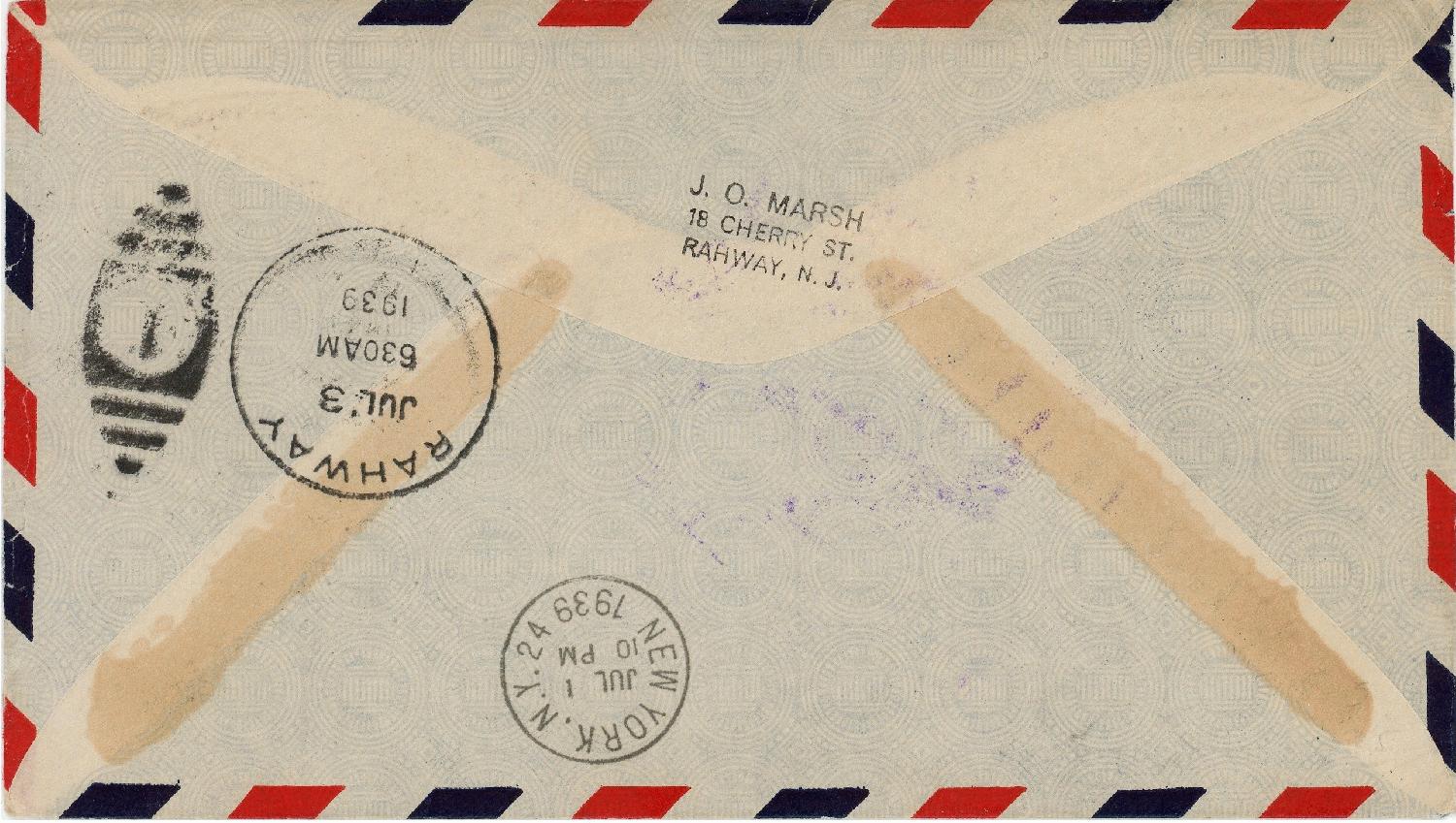 - Ankunft frühmorgens in Rahway am 3. Juli 1939, 6:30 Uhr Ortszeit (mit Ankunftsstempel)