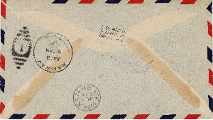 Die Frankatur von 1 Shilling (1s) wirft weitere Fragen auf, denn am 1.10.1970 wurde das Porto für Luftpostbriefe noch in der alten Währung von 1s auf 1s 6d erhöht. Ab dem 15.02.1971 kostete ein Luftpostbrief dann 7,5 (neue) Pence. Wahrscheinlich waren die Postbeamten mit der Umrechnung von der alten auf die neue Währung oft überfordert.