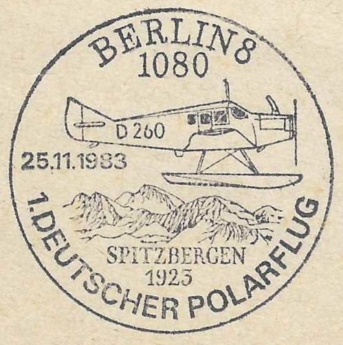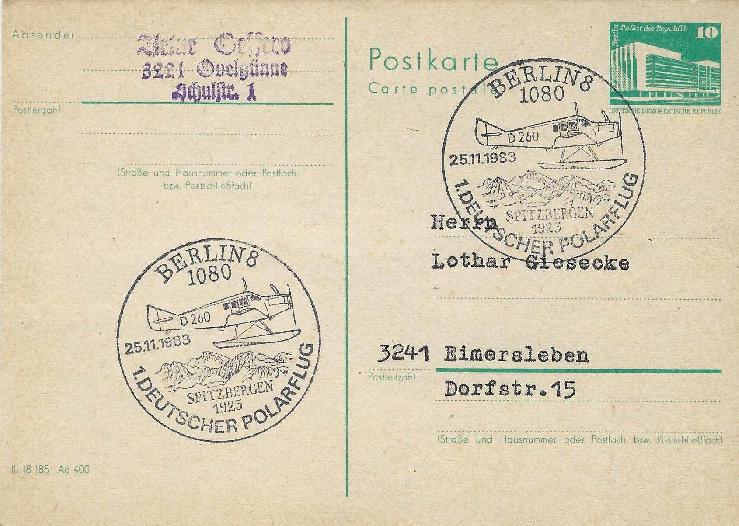 eine DDR-Ganzsache mit einem Sonderstempel(25.11.1983) vom 1.Deutschen Polarflug 1923.