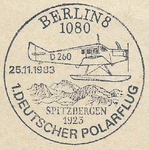 Im Stempel eine Junkers F13 über Spitzbergen.