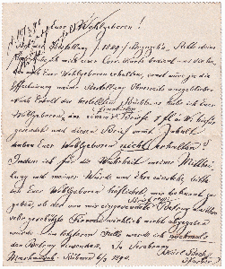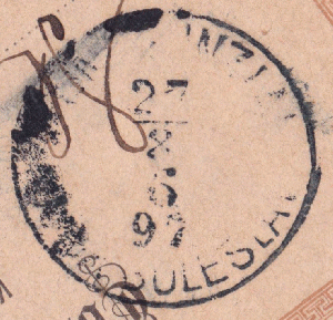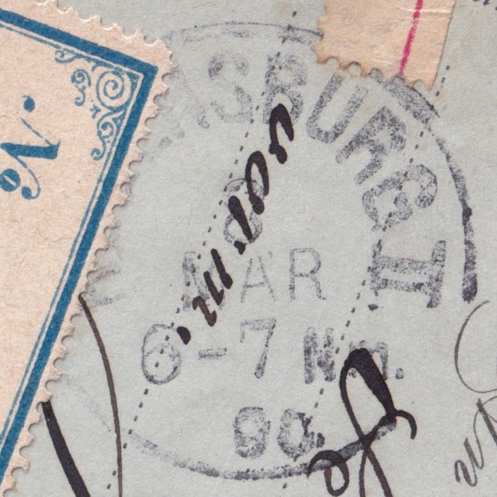 Der Brief kam einen Tag später am 08.03.1890 in Regensburg an. Leider sind sowohl der Ankunftsstempel als auch der Briefträgerstempel nicht vollständig abgeschlagen bzw. zu sehen.