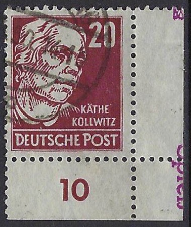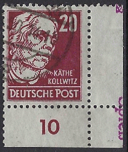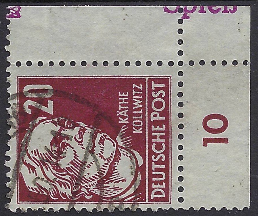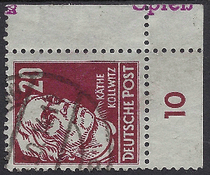 Als stiller Hintergrundleser zum Thema Köpfe I und II habe ich auch dieses Thema als Hinweis gern zur Kenntnis genommen. Vor etwa 20 Jahren hatte ich mich auch mit dieser Dauerserie etwas mehr beschäftigt. Dieser Tage lief mir zufällig das nachfolgende Exemplar einer SBZ Mi-Nr. 219 als Eckrandstück über den Weg und ich musste an dieses Thema denken *g*