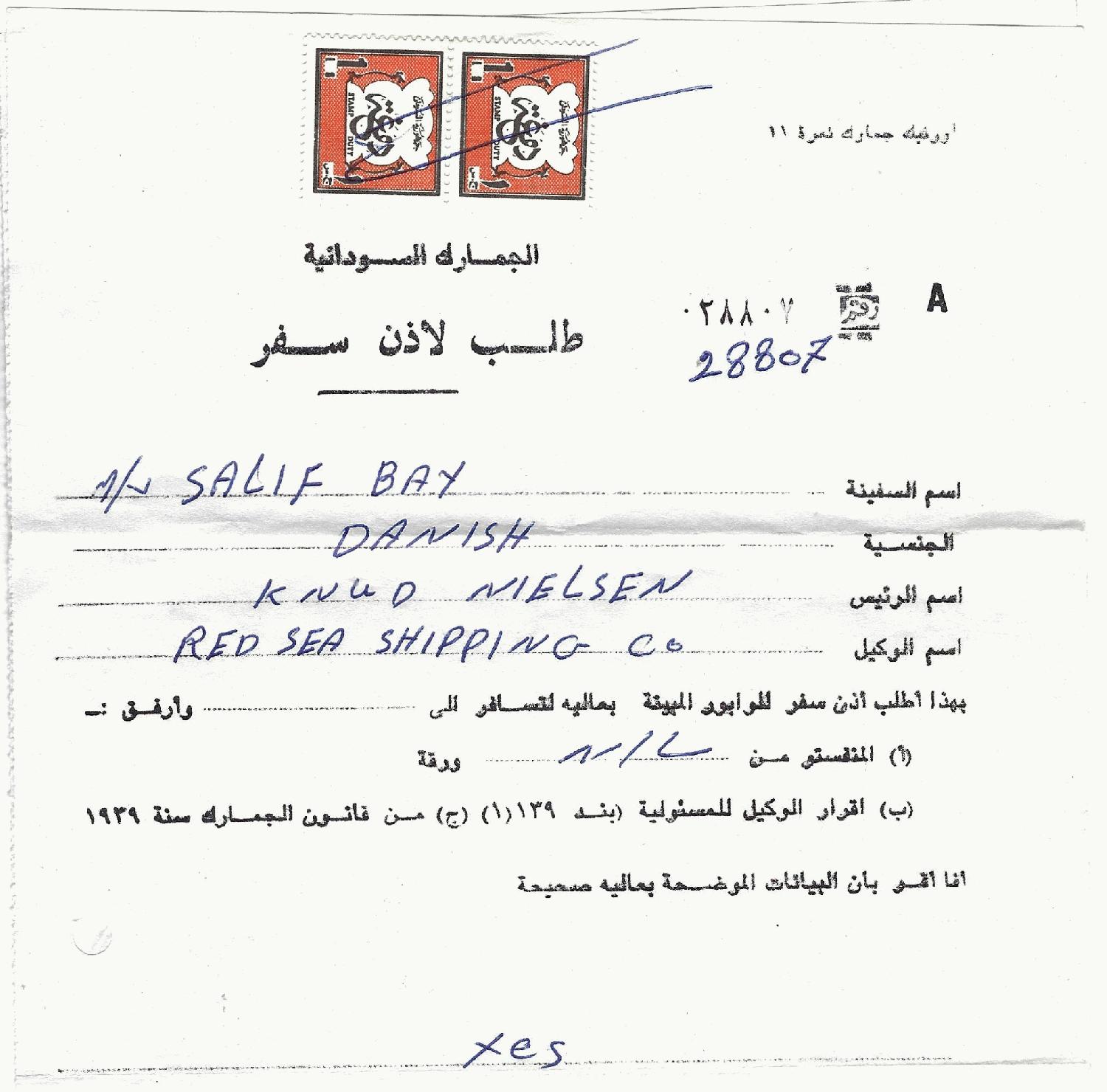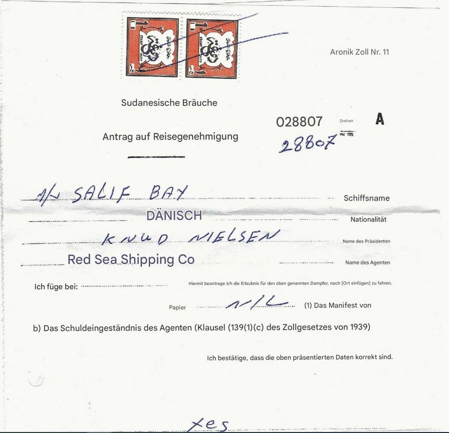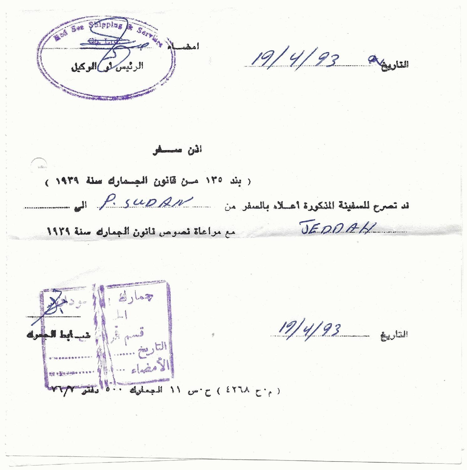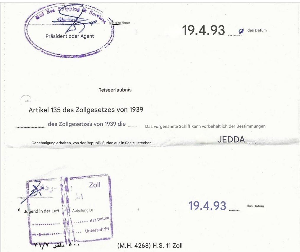 mein Kollege hat mir eben bestätigt, dass es sich um eine Reisebestätigung handelt, für eine Reise aus dem Sudan nach Jeddah, Saudi Arabien - durchgeführt mit einem Schiff der Red Sea Shipping Co.