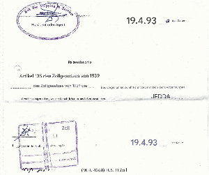 Nachfolgend etwas fiskalisches - aber was? Und woher? Kann es jemand lesen? Scheinbar geht es um einen Transportschein o.ä. aus dem Schifffahrtswesen aus dem Jahr 1993?