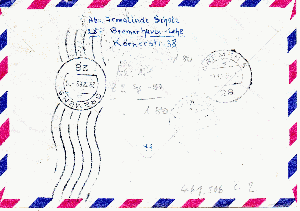 " Der Brief (aus ) kam vermutlich im Luftpostkartenschluss aus Genf direkt zur Luftpostleitstelle Köln, daher der Stempel aus Porz-Wahn. Wäre er über den Erdweg und die Schiene (Bahnpost) gelaufen hätte er andere Eilbotenstempel auf der Rückseite. In Porz in der Luftpostleitstelle wurde der Versand entkartet und ist am 15 abends bis 20 Uhr gestempelt. Wurde dann vermutlich mit einer Straßenpost bzw. Ortspost zum Postamt Köln 3 Briefabgang an den Bahnhof geleitet. Daher der Stempel 5c/15-22 – dort bis 22 Uhr gestempelt! Nächster Abgang nach 22 Uhr lt. Postkursbuch war die ÜpU ab Köln 1/2 am Hbf um 1.35 Uhr. So wurde der Brief ab Köln Briefabgang auf die ÜpU (Überlandpost mit Umarbeitung) geleitet. Aachen an 04:25 Uhr. Diese ÜpU hat gestempelt mit 510-3 04/13. 510-3 ist das Fahrplanbild (510 steht für den Leitbereich Aachen und Dienstleitendes Postamt und -3 für das Fahrplanbild) bzw. Straßenpostnummer und 04 war die Fahrtnummer. Der 13. ist das Datum und sieht bei näherem hinschauen auf dem Brief schaut es wie der 15. aus. Dann in Aachen gestempelt bis 5 Uhr und der andere Stempel ist der von der Eilzustellung in Aachen, dort ist Brief am 15 X 70 morgens zwischen 6 und 7 Uhr morgens.