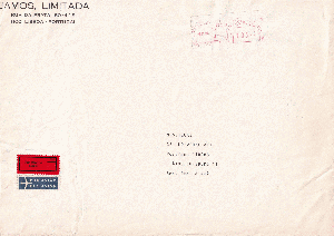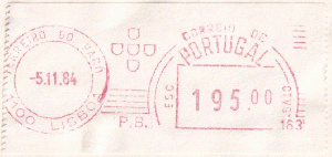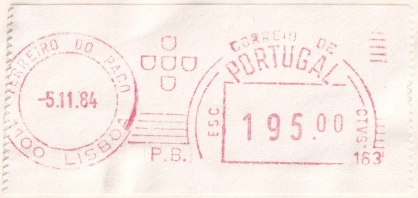 Absenderfreistempel Pitney Bowes-GB “5000” aus Lissabon, Terreiro do Paço vom 05.11.1984