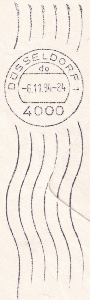 Handrollstempel vom Postamt Düsseldorf 1 vom 06.11.1984 24 Uhr (normale Stellung des Ortsstempels)