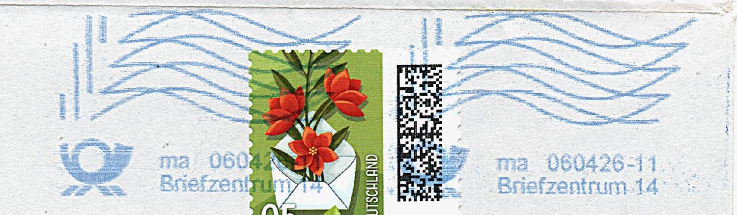 Tintenstrahlentwertung aus dem BZ 14 mit Postjet ma / Briefzentrum 14 vom 06.04.2026