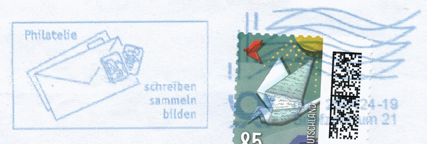 Wobei mein derzeit frühestes vorliegende Beispiel bereits vom 17.05.2024 stammt, wobei dieses Exemplar leider viel zu schlecht und fast unlesbar ausgeführt ist. Die Herkunft Briefzentrum 37 wird aber trotzdem eindeutig durch die Sendungsverfolgung in der Post-App belegt. Seit etwa diesem Tag habe ich hier in Göttingen auch keinen Brief mit einem klassischen Maschinenstempel-Abschlag von einer "Aufstellmaschine (AM)" mehr gesehen. Aber um hier eine wirkliche Aussage treffen zu können, liegen mir leider aktuell noch zu wenige Briefmarkensendungen vor.