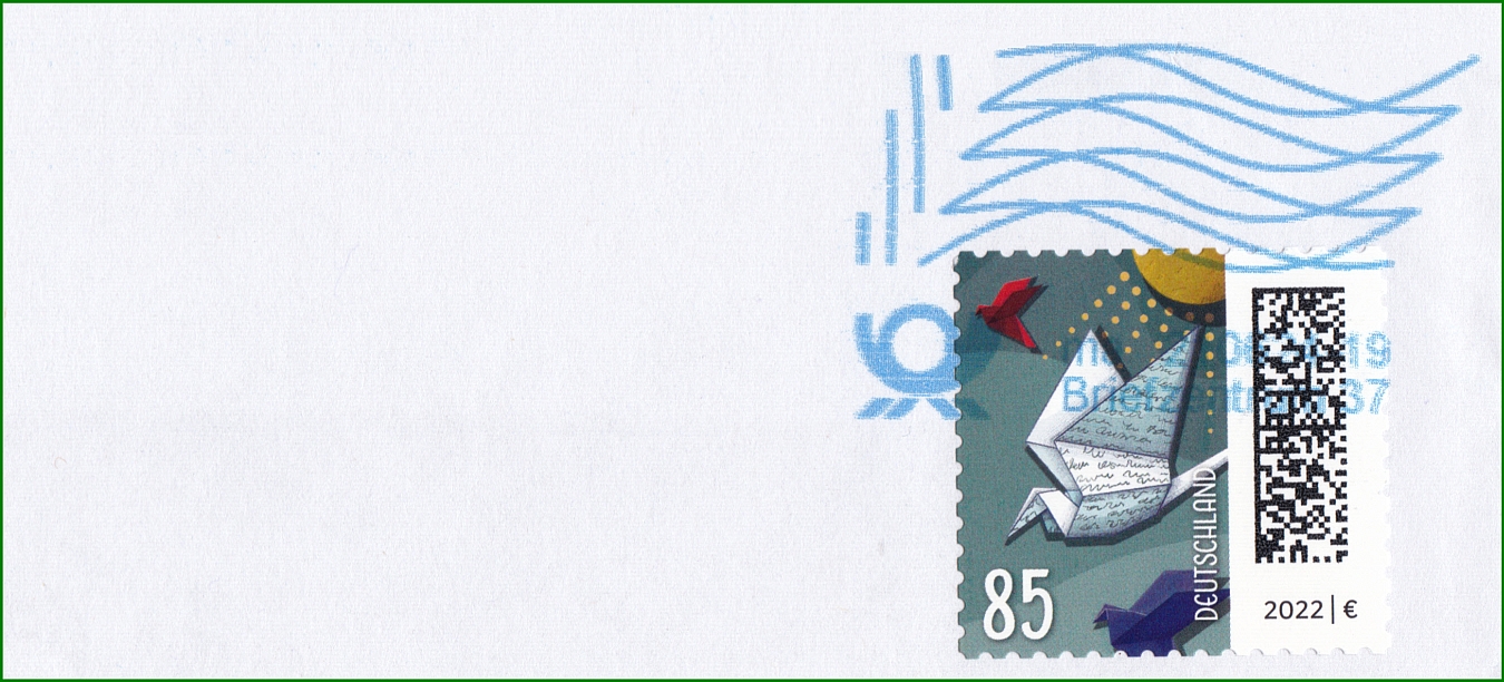 Dieser Abschlag entstand 2021 eindeutig im BZ 46 (Duisburg). Die Post hat dieses Format aber nicht für das BZ 46 angekündigt, auch nicht das kleinere Format für die AM 990/991-Maschinen.