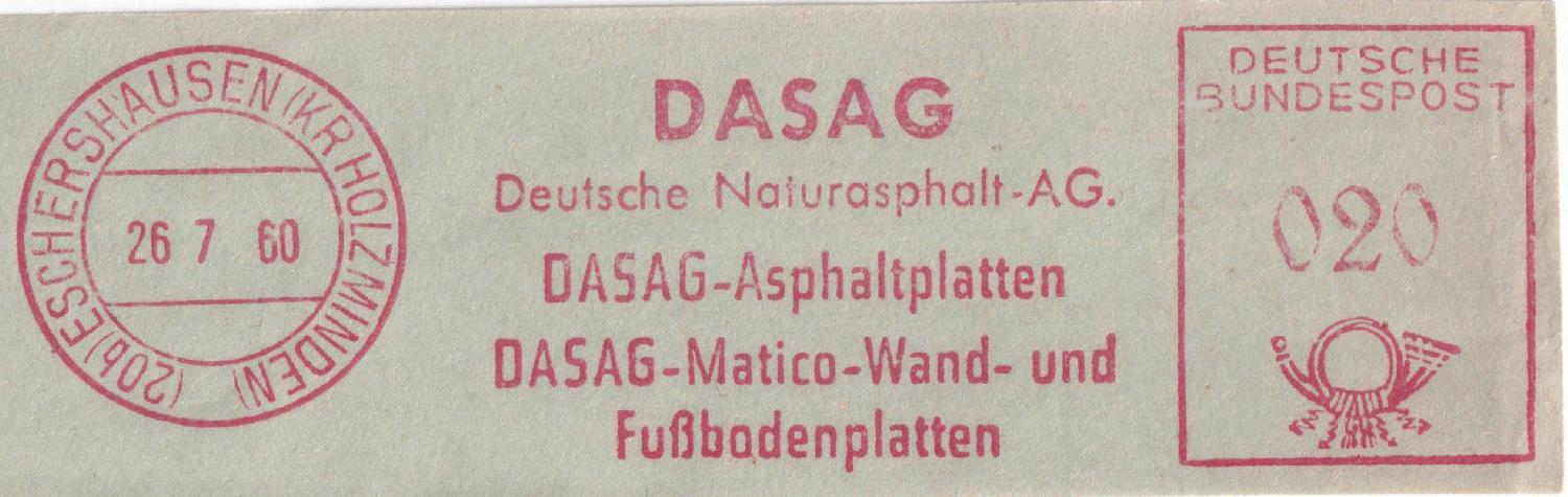 Später scheint es nur noch die DASAG in Eschershausen gegeben zu haben. Zum Beispiel erwarb die DASAG (Deutsche Asphalt AG) 1956 die Deutsche Naturasphalt GmbH mit Sitz in Eschershausen. 1958 verlegte die DASAG ihren Sitz nach Eschershausen [3].
