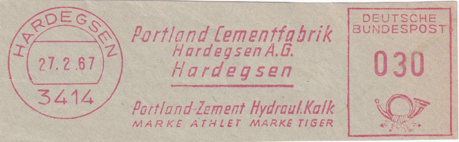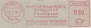 eine kleine Folge von drei Absenderfreistempeln der Portland Cementfabrik in Hardegsen: