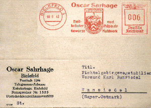 1943, Oscar Sarhage im Freistempel - auf der Karte Oscar Sahrhage
