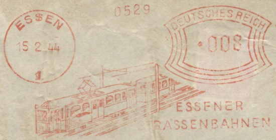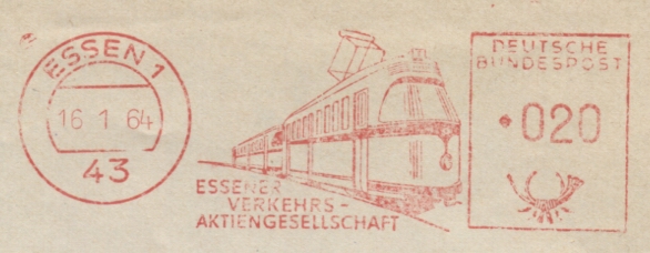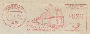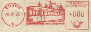 Die Essener Straßenbahnen bieten interessantes Material, um die Abfolge von Absenderfreistempeln (AFS) zeigen und nebenher noch ihre Geschichte zu dokumentieren.