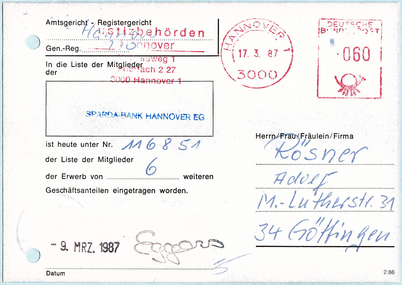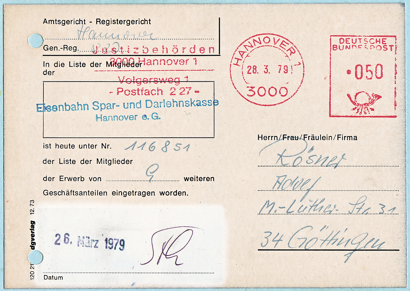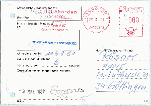 Die nächste Stufe wird gezeigt mit einer im zuständigen Postamt hinterlegten Karte. Das galt für jede Absenderfreistempelmaschine! Ist irgendwann alles im Altpapier gelandet.