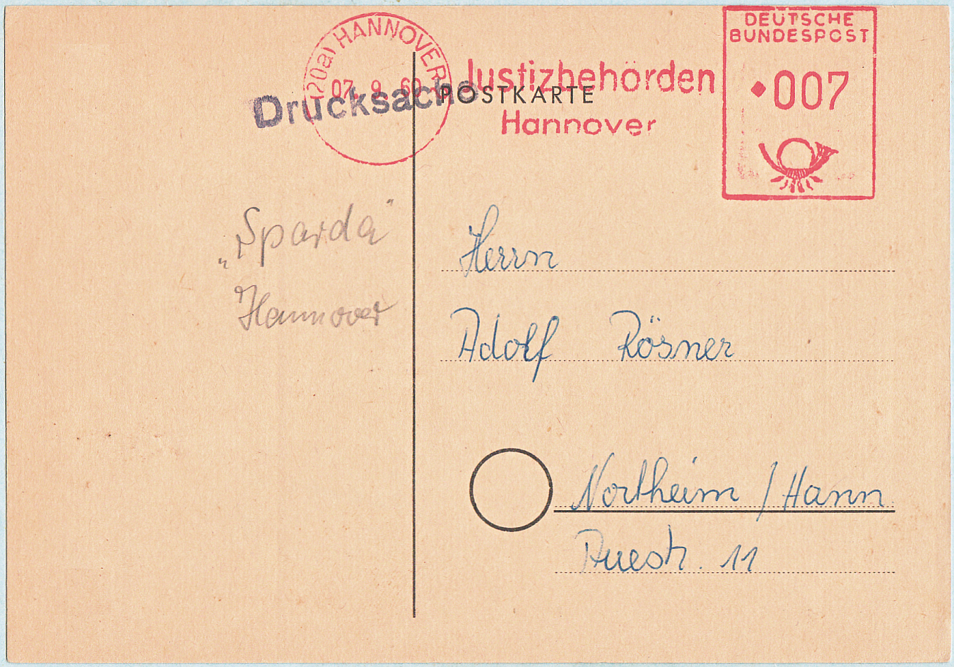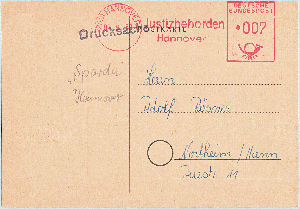 Und hier eine kleine Nachkriegs-Sukzession des Absenderfreistempelwesens der Justizbehörden Göttingen, beginnend mit einer