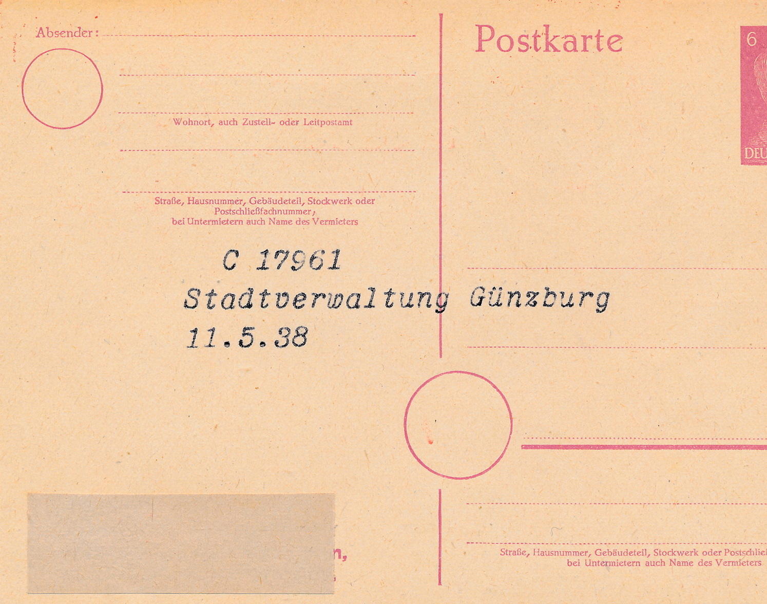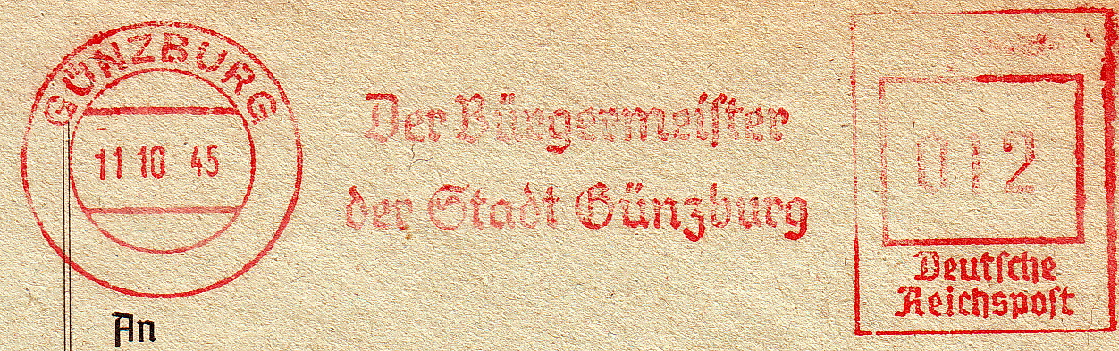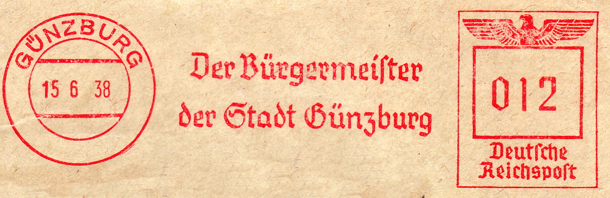 Vermerk Rückseite: C 17961, Stadtverwaltung Günzburg in Betrieb seit 11.5. 1938