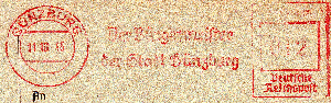 Im März 1939 kam eine Francotyp D mit Wertrahmen Reichsadler, Landesname in Frakturschrift zum Einsatz.