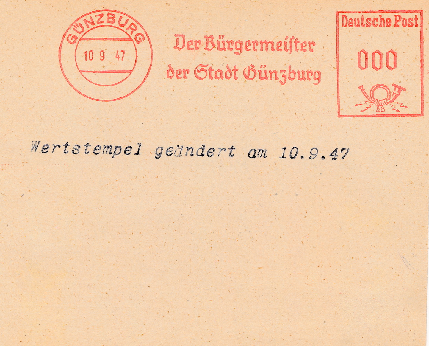 Vorderseite: Wertstempel geändert am 10.9.1947