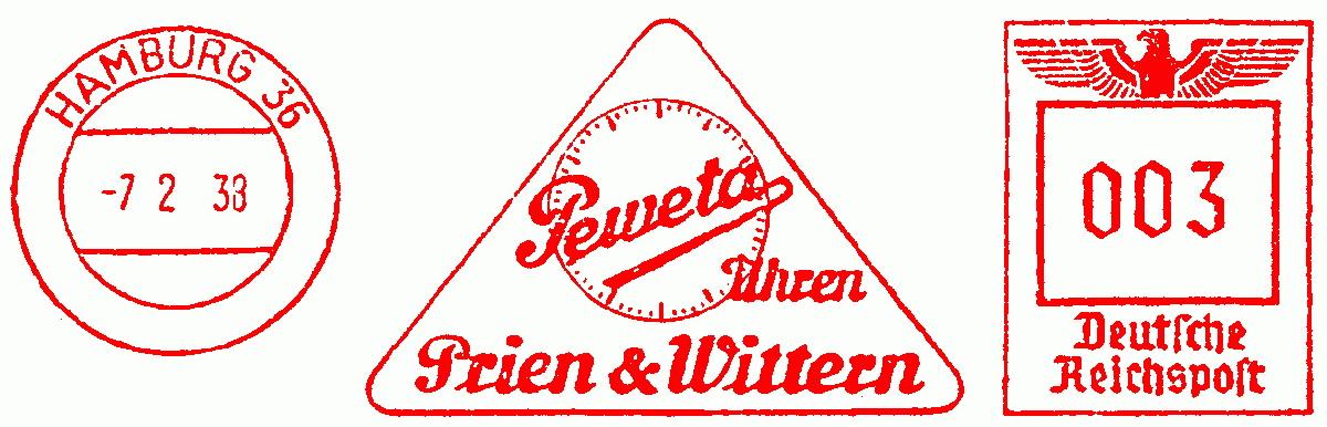 Hamburg 36, PEWATA UHREN Prien & Wittern (7.2.1938) / Prien & Wittern Elektrische PEWETA Uhren gehen unglaublich präzise