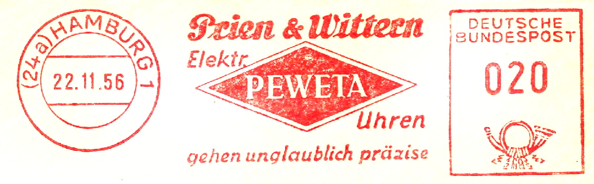(24a) Hamburg 1, PEWATA UHREN - Prien & Wittern / 2 Hamburg 22 PEWETA für jeden Raum eine Uhr