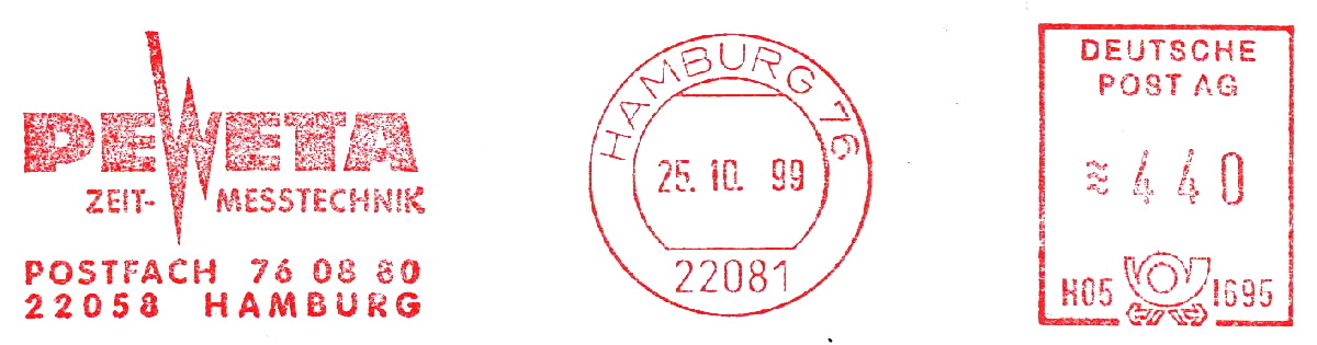 22082 Hamburg 76 PEWATA UHREN / H051695, 22081 Hamburg 76 PEWATA Zeit-Messtechnik