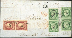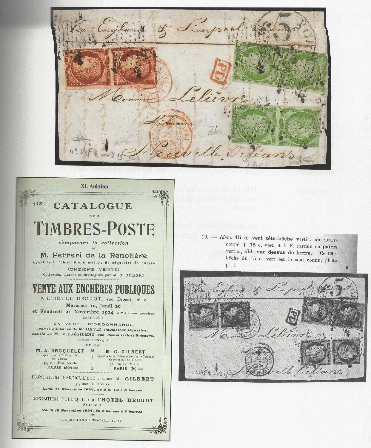Zu dem extrem seltenen Frankreich-Brief aus der Auktion Ferrary lese ich: "Sans ce devant de lettre, aucune collection de tete-beche ne peut etre complète...Du moins tant qu´on n´aura pas découvert un autre tete-beche du 15 c vert. Il en existe bien une seconde de la meme archive. meme destinataire, adresse et affranchissement..ou presque. Les personnes ayant apercu cette pièce depuis la vente Ferrari se comptent sur les doigts d´une main, d´où son surnom "l´Arlésienne".