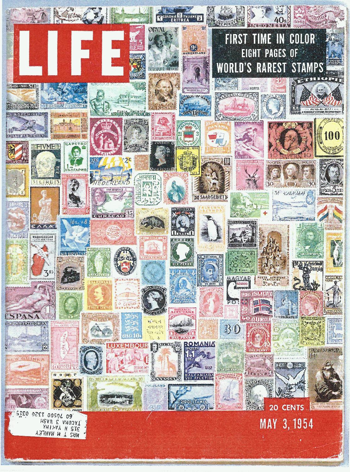 Als 1954 im LIFE Magazin der bahnbrechende Artikel «First Time in Color, eight pages of World’s rarest stamps« publiziert wurde, finden wir unter den 100 bewerteten Top-Raritäten unseren 48er-Block immerhin auf Platz 21 der Welt-Bestenliste, mit einem Gegenwert von US$ 25'000 (Seite 91).