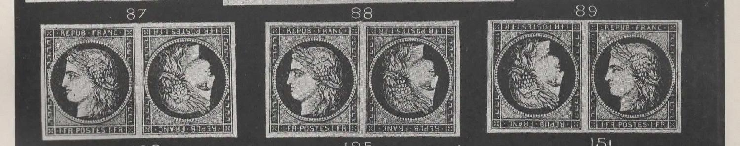 Im Jahr 1931 fand ein Herr F. (mehr steht nicht im Buch) in einem alten Buch (bouquin), dass seit Jahrzehnten als Erbe seiner Eltern in seiner Bibliothek stand, einen inkompletten Bogen mit 22 Vermillions, also Marken mit der Nominale zu je 1 Franc. Der Bogen wurde im Laufe der Entdeckung und Folgezeit getrennt und Maurice Burrus kam in den Besitz eines 8-er Bogens vom linken Rand aus diesem Blatt. Ganz rechts gab es auch einen Viererblock mit einem Kehrdruckpaar, welches die Franzosen tete-beche nennen. Dieses seltene Traumstück stammt auch aus dem Blatt, welches 1931 entdeckt wurde und war einmal im Besitz von Theodore Champion. Es gibt aber noch einen weiteren Viererblock mit diesem tete-beche, welcher eine etwas blassere Farbe besitzt.