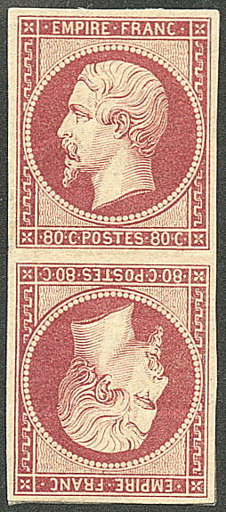 Yvert 17Af - Beschreibung: Tête-bêche. No 17Af, paire verticale, superbe et seule pièce connue. - RRRR (ex collection La Fayette) (cote Yvert: 500000 €)